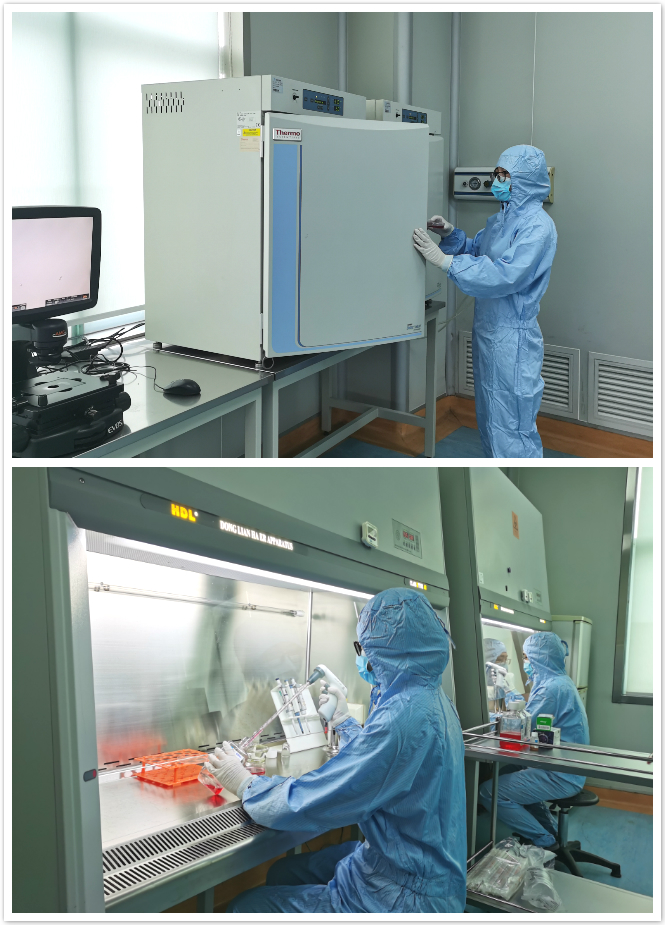 河北燕達(dá)醫(yī)學(xué)研究院與中關(guān)村三有利再生醫(yī)學(xué)研究中心項(xiàng)目人員接到通知后,馬上啟動(dòng)項(xiàng)目程序。待患者簽署知情同意書后,項(xiàng)目負(fù)責(zé)人簽署細(xì)胞制備任務(wù)書,自患者采集的濃縮白細(xì)胞被送至河北燕達(dá)醫(yī)學(xué)研究院制備轉(zhuǎn)化部GMP 實(shí)驗(yàn)室。實(shí)驗(yàn)室登記交接、分離外周血單個(gè)核細(xì)胞、負(fù)分選T細(xì)胞、T細(xì)胞激活,一系列操作實(shí)驗(yàn)室人員均按SOP 認(rèn)真有序完成。