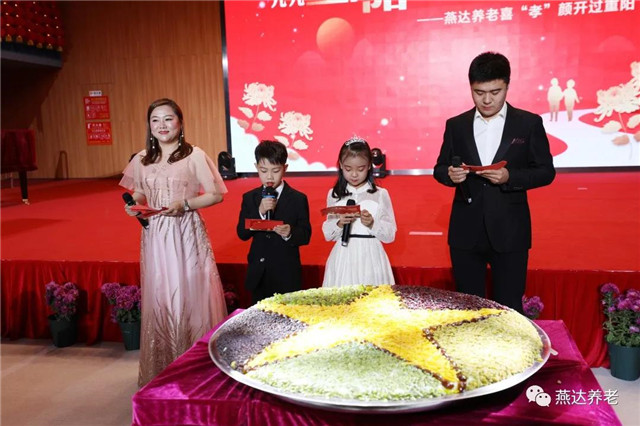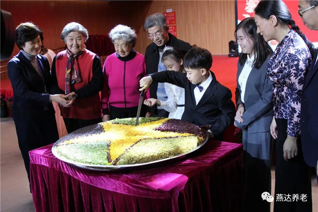 燕達養(yǎng)護中心副總裁李海燕、三河市婦聯(lián)祝志敏主席、養(yǎng)護中心總經(jīng)理周素娟女士、常務(wù)副總崔凱先生、在住賓客代表李之勇,趙淑琴,殷鳳彩及燕達小小主持人妞妞、徐子浩共同切重陽糕,并由工作人員將重陽糕一一遞送到長者手中,送去甜蜜,接收祝福!